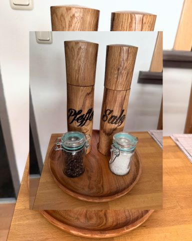 Willkommen bei Woodart Sommer in Villach, wo Kreativität auf Funktionalität trifft! Unsere Auswahl an einzelnen Mühlen oder modernen Paaren für Salz und Pfeffer lässt keine Wünsche offen. Ob mit oder ohne Untersetzteller - gestalten Sie Ihr Essgeschirr ganz nach Ihrem Geschmack. Zudem bieten wir die Möglichkeit an, Ihre Mühlen individuell anpassen zu lassen, um ein echtes Unikat zu schaffen. Lassen Sie Ihrer Kreativität freien Lauf und verleihen Sie Ihrem Tisch einen ganz besonderen Flair!